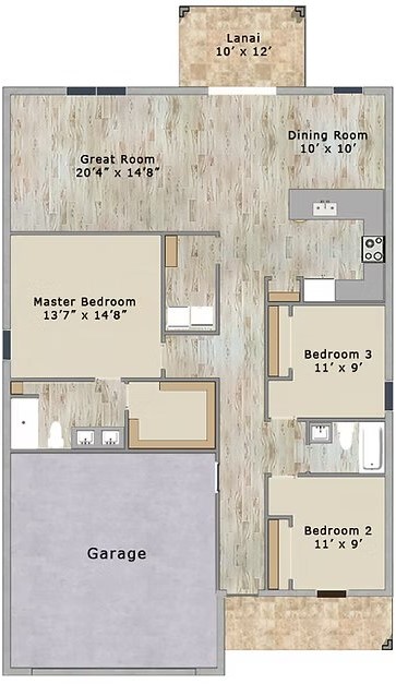 1,614 sq ft • 3 bed / 2 bath • 2-car garage • 2,280 total sq ft